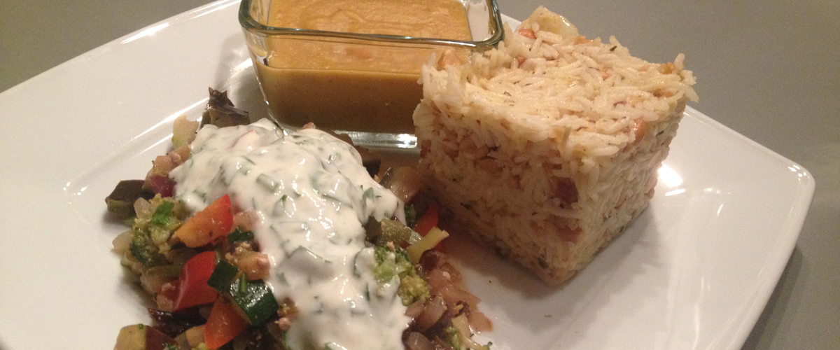 Exotischer Yogi-Reis mit indischem Gemüse